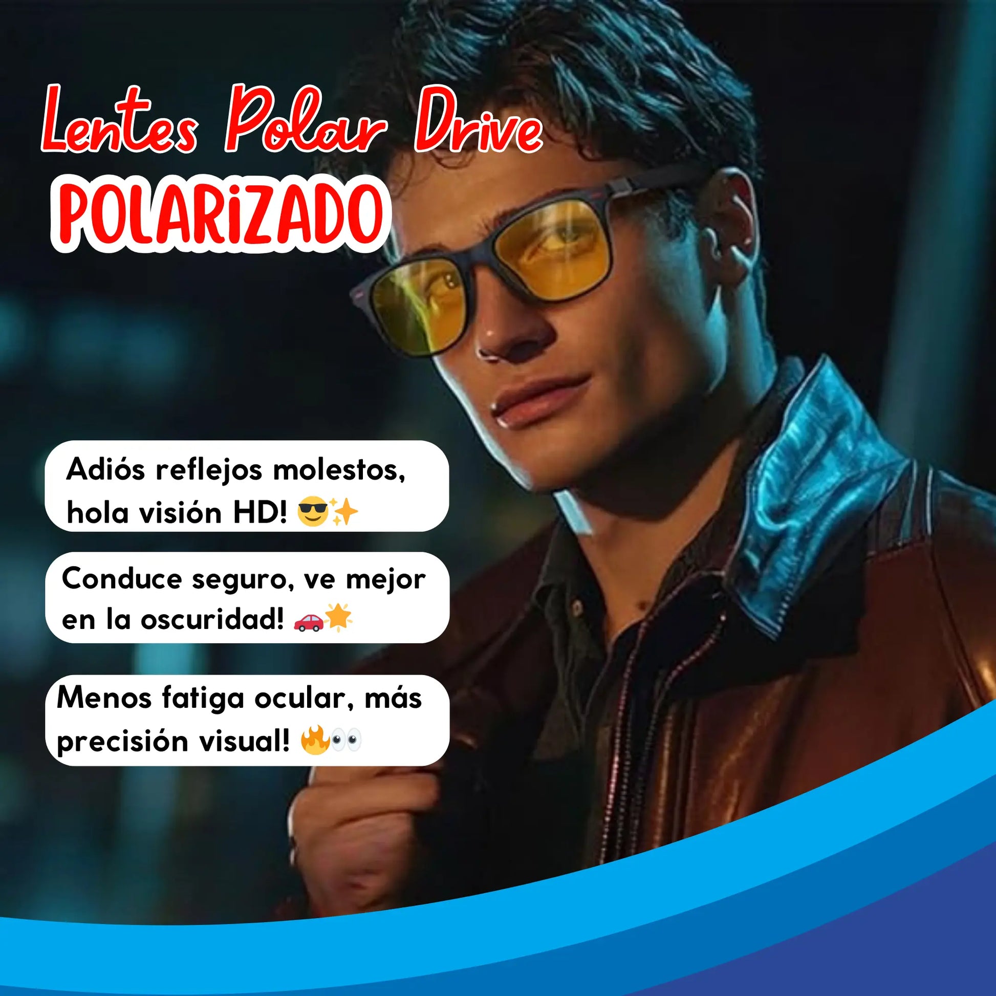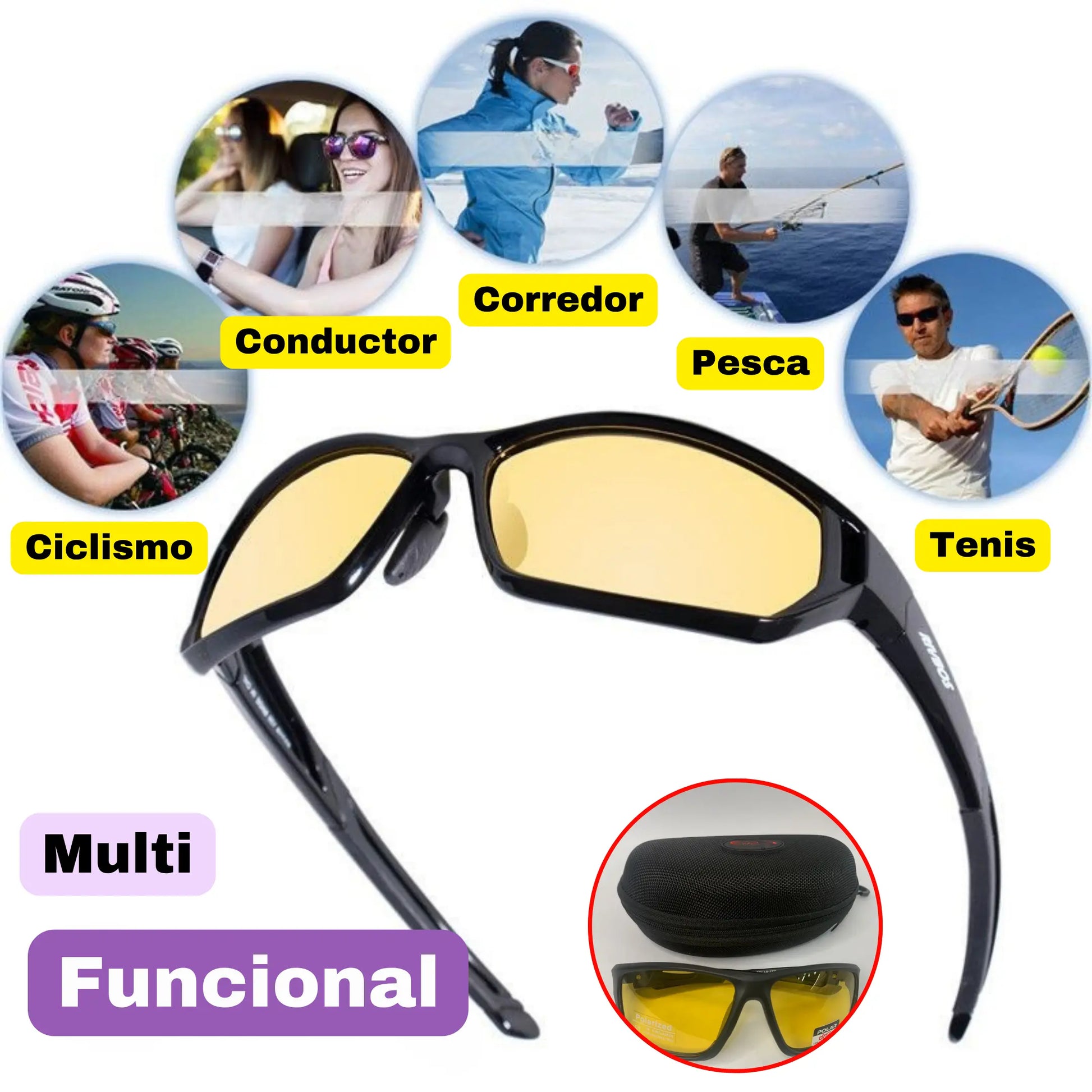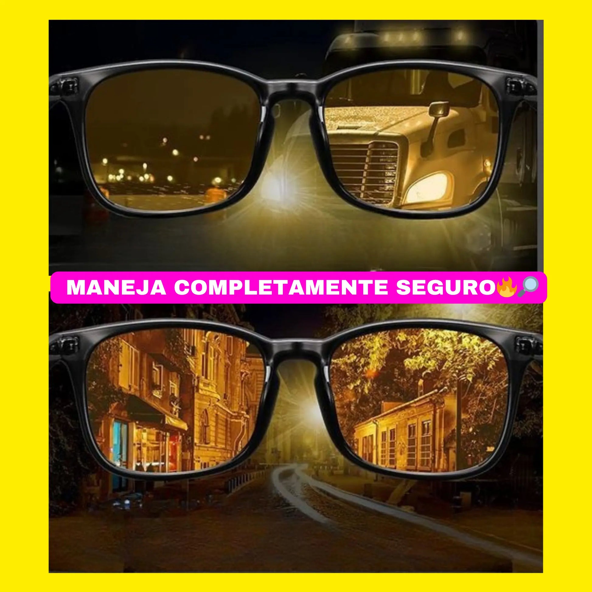 ¡No más luces cegadoras en la carretera! 🌟 Nuestras gafas polarizadas de color amarillo reducen el deslumbramiento intenso , mejoran la visibilidad con poca luz y evitan la fatiga ocular para una conducción más segura y cómoda.